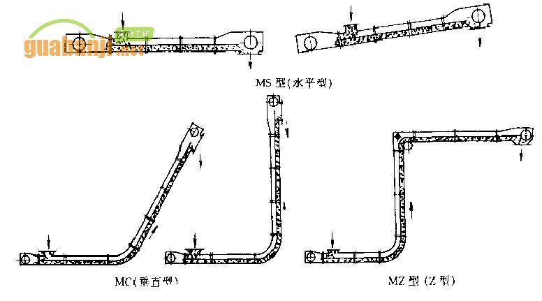 埋刮板輸送機產品常見型號及布置形式示意圖: