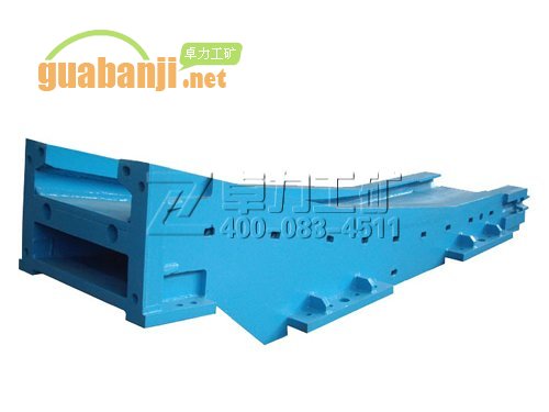 溜槽分為中部槽、調(diào)整溜槽和過渡溜槽,溜槽是整個(gè)刮板運(yùn)輸機(jī)的機(jī)身,有一定的強(qiáng)度,有較高的耐磨性。中部槽又叫標(biāo)準(zhǔn)槽,其規(guī)格為1500*620*180,每節(jié)溜槽可偏轉(zhuǎn)30。