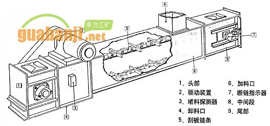 埋刮板輸送機(jī)在封閉的矩形斷面的殼體內(nèi),借助于運(yùn)動(dòng)著的刮板鏈條連續(xù)輸送散狀物科的運(yùn)輸設(shè)備。